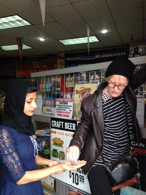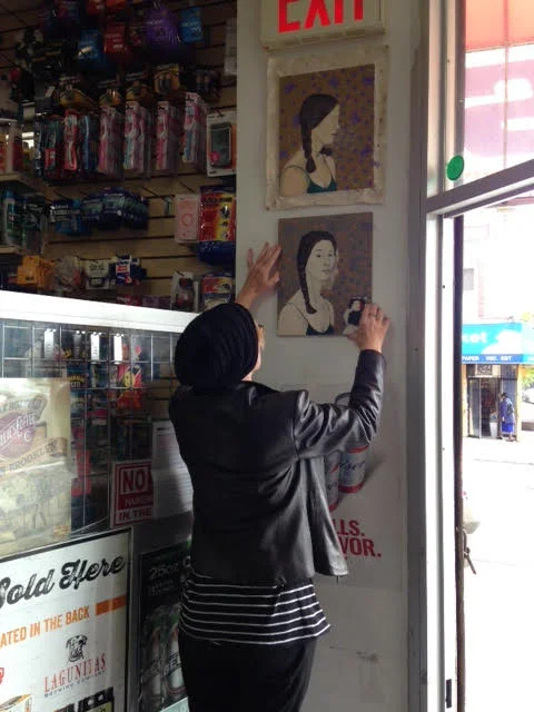 Here she is receiving the paintings at her bodega: