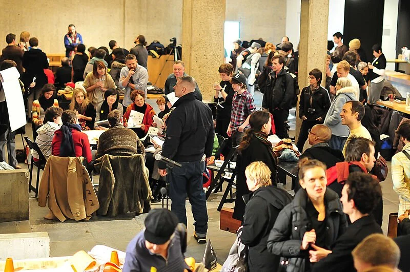 Trade School, a collaborative that coordinates instruction for barter, offered sixteen courses at the Whitney, March 2011. Photograph by Tiffany Oelfke