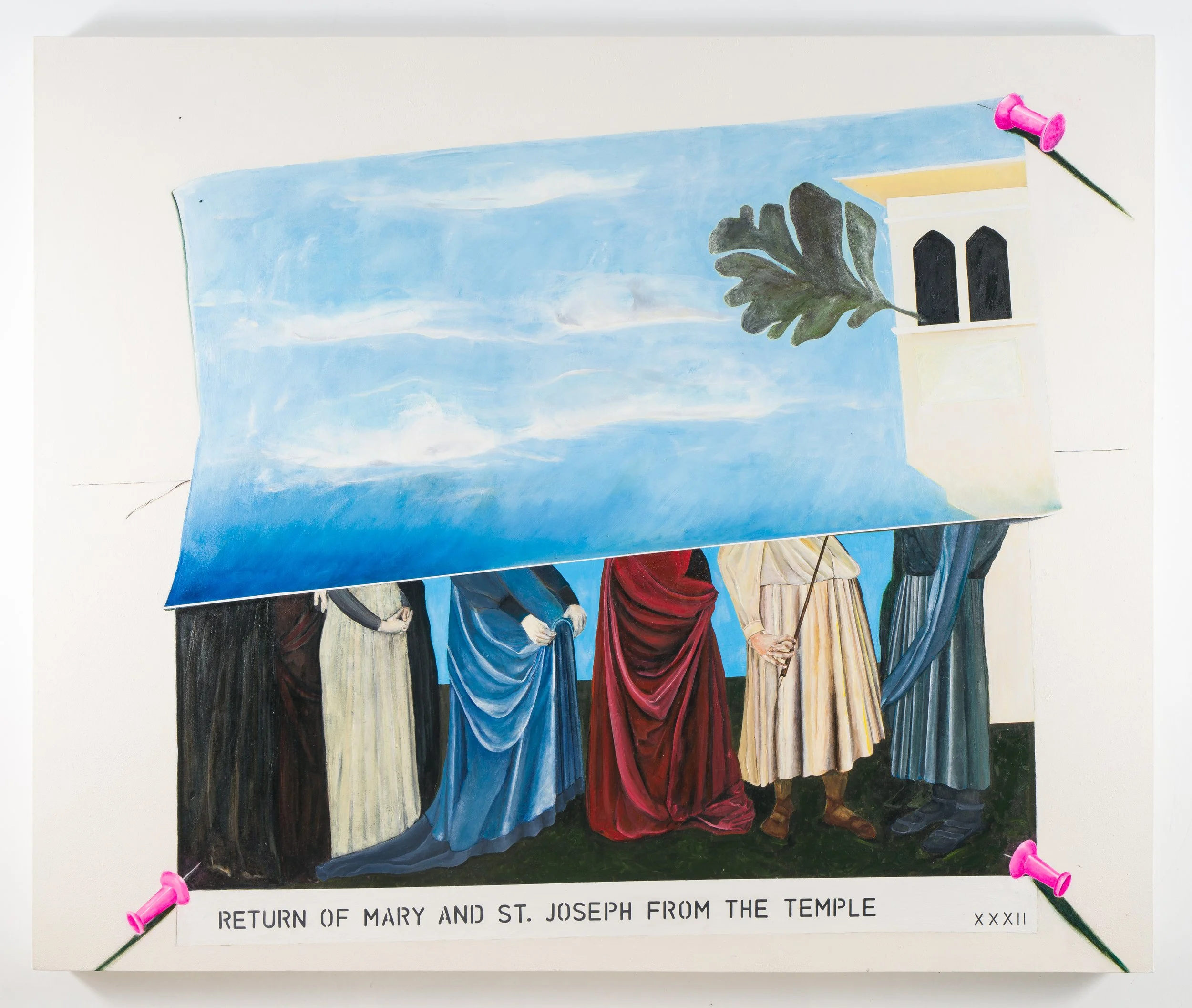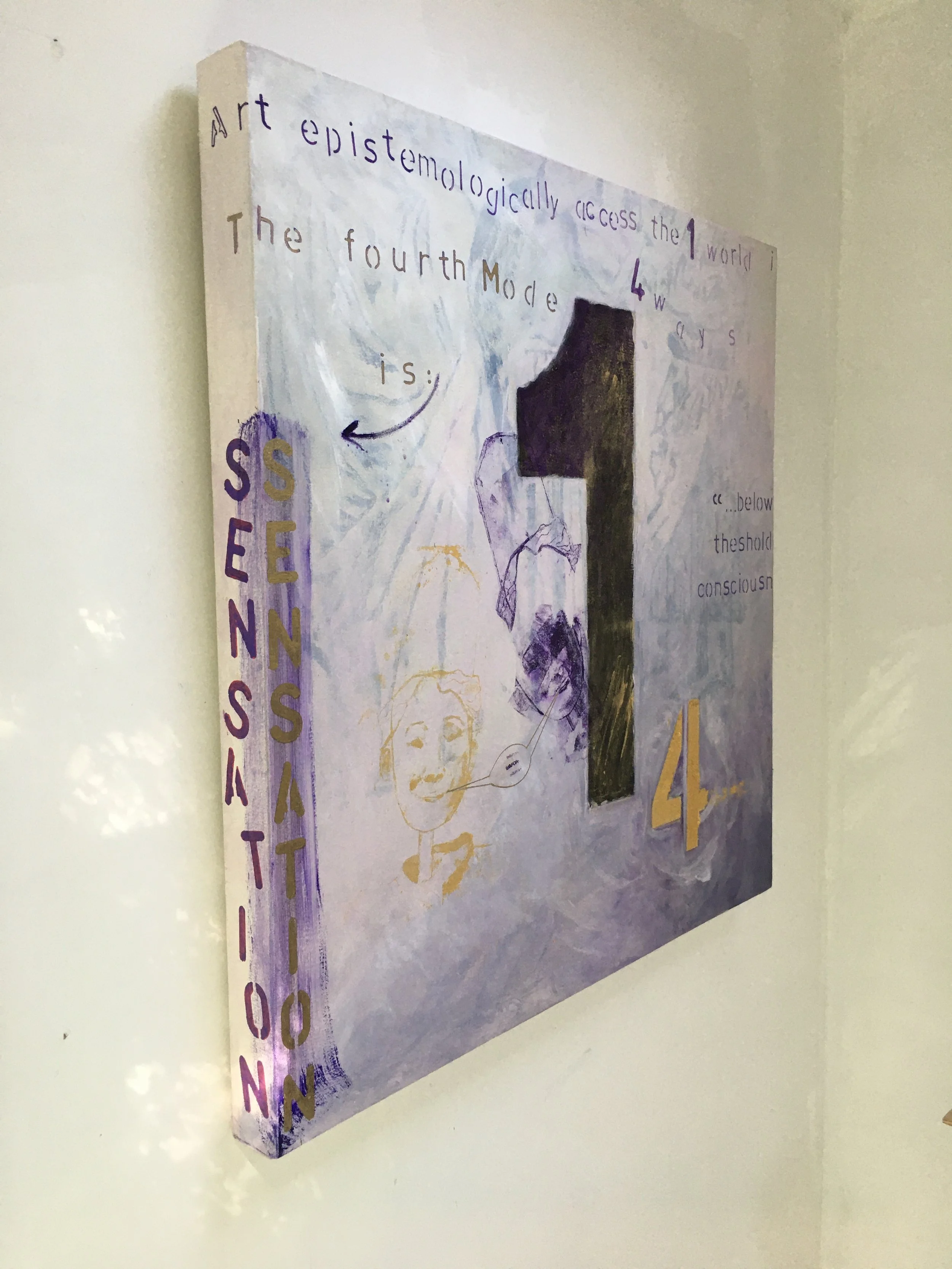 My work is about philosophical investigation. And the transcendence that follows. I have used only one image, Giotto’s The Marriage, for over three decades, painting it each time in different, edited ways thereby revealing the multiplicity that lies within both visual experience and thought. Every visual experience and every thought has many, many perspectives that could be chosen, and using the one image is a way of investigating that fact. For the past decade, the additive modalities of conversation and text have been applied to the (nested) investigation of a particular philosophical topic, under the umbrella of the nonprofit talkPOPc (Philosophers’ Ontological Party club). The public, in-person conversations (MC’d by our mascot puppet Popsey!) then open up this topic to others and the generating consensus is the culmination of the investigative urge. Quotes from the conversations get shifted back into the artworks in the form of printed words on rolled paper, a device that allows viewers to delve and pry for themselves, revealing the social nature of investigation.